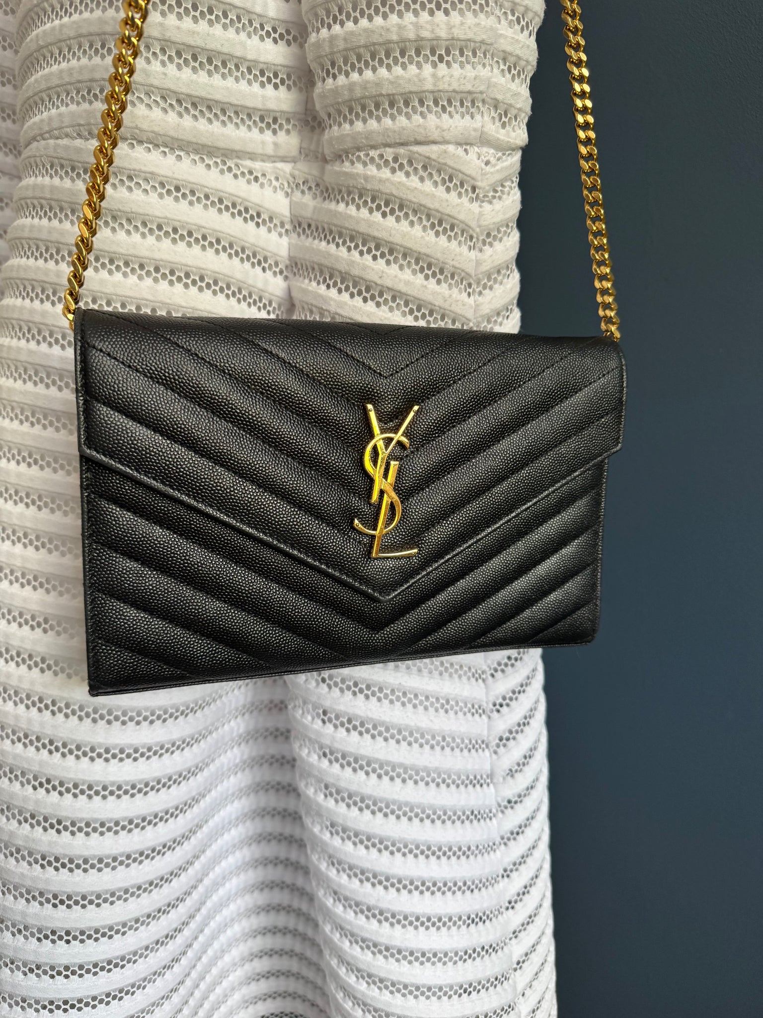 YSL CASSANDRE ENVELOPE CHAIN WALLET