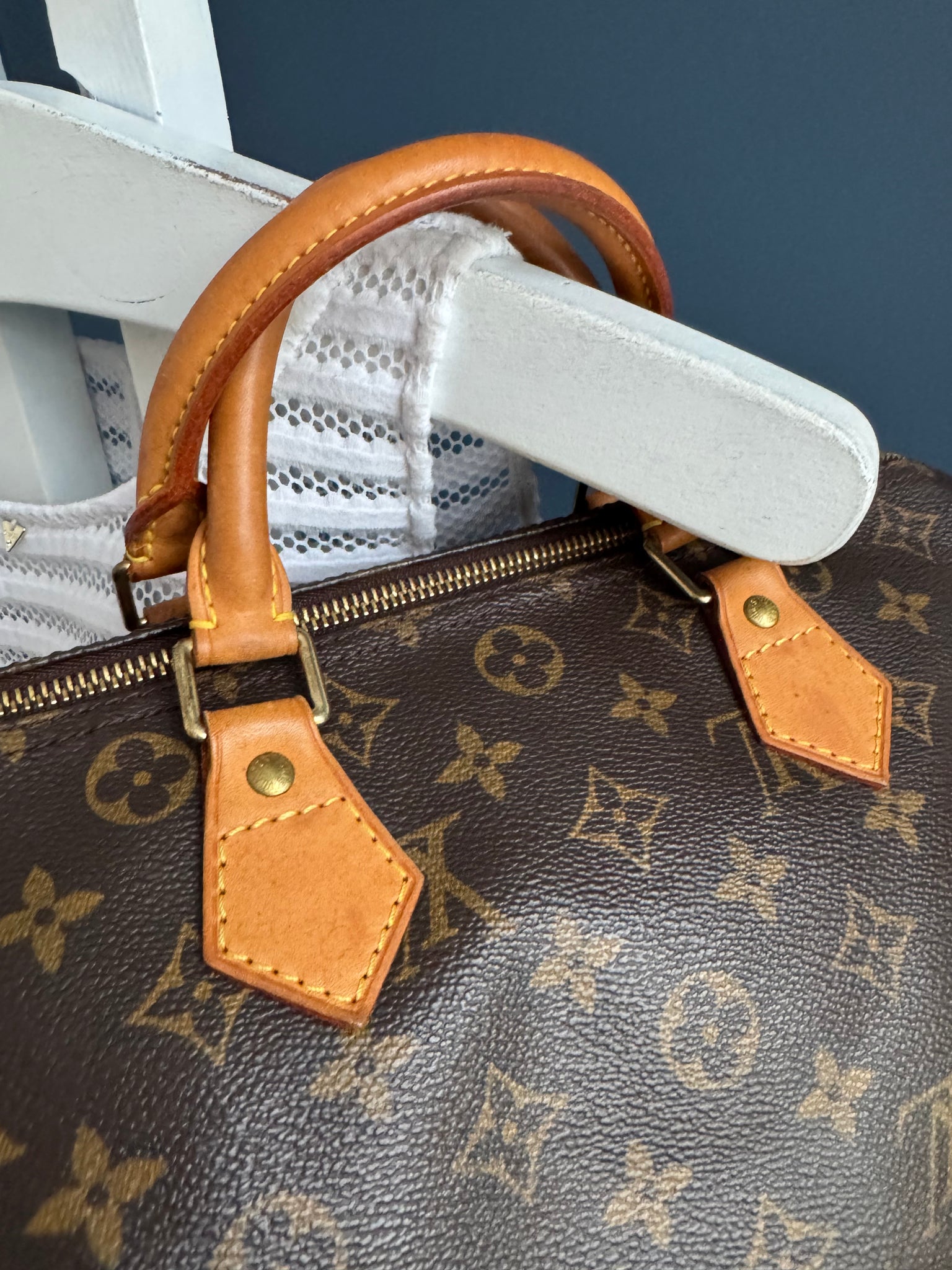 - Minimale Gebrauchsspuren an den Lederdetails